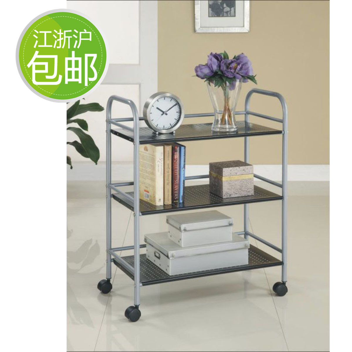 置物架 层架 【DX】空间巨匠DPC008金属三层车 收纳架 多功用架