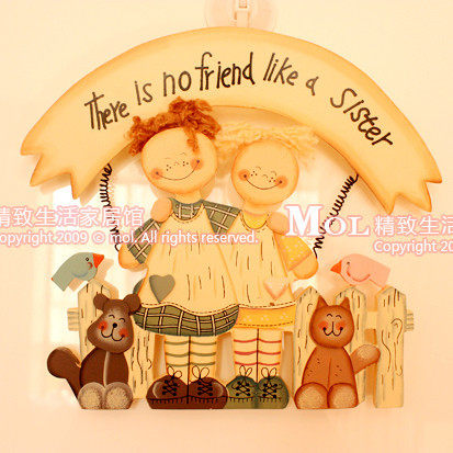 挂式挂牌 门饰猫狗栅栏欢送牌0.45 mol 北欧原木 情侣娃娃粉饰品